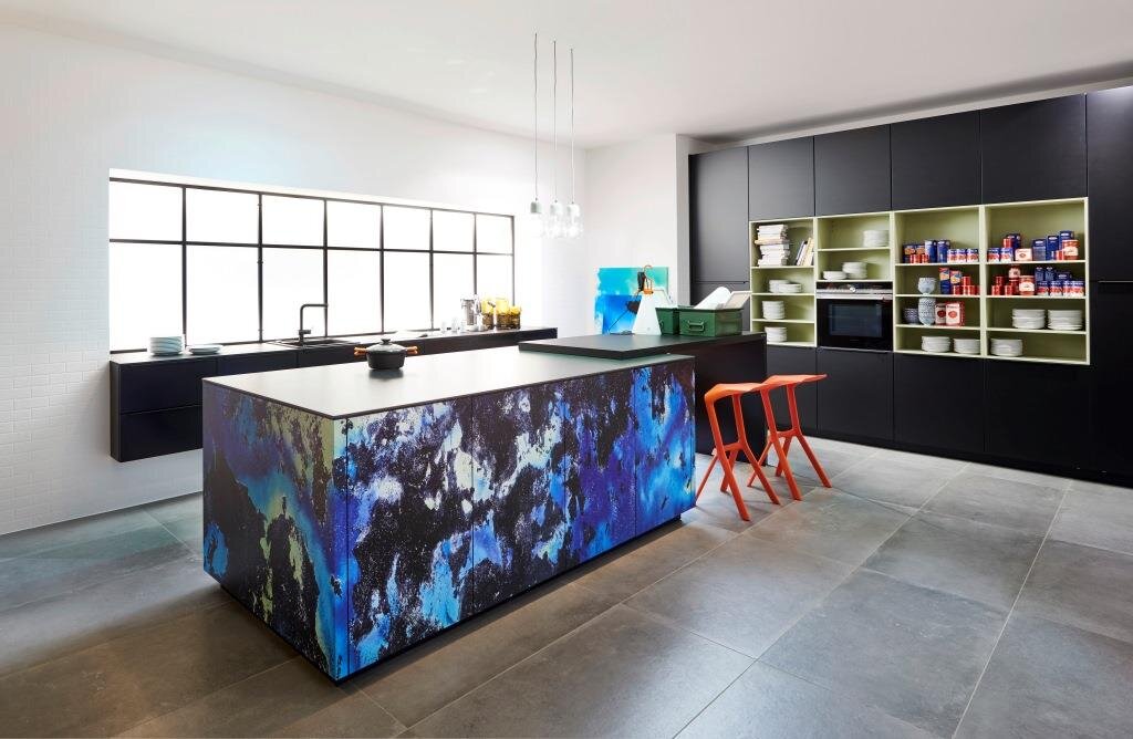 Возможность сделать интерьер цельным, когда жилые помещения и кухня плавно перетекают друг в друга и граница между ними размыта, — это не просто тренд, это необходимость. Поэтому такой космический дизайн может быть не только у кухни, но и у других предметов интерьера, входящих в модульную концепцию: тумбы, камины, библиотеки. Что касается самой кухни, то некоторые элементы можно комбинировать с другими линейками, создавая индивидуальный проект.