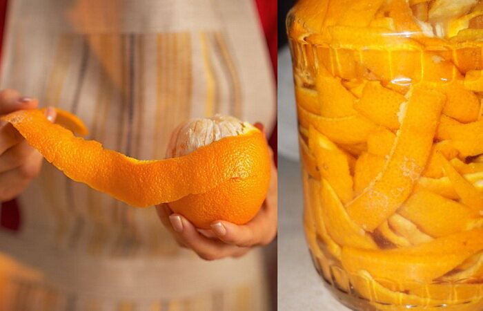 Предновогодний период – время, когда лимоны, мандарины и апельсины поглощаются буквально тоннами. Главное при этом не выбрасывать кожуру. Это кладезь полезных свойств, и опытные хозяйки точно знают, как выжать максимум из цитрусовых фруктов. Цедру можно использовать и для кулинарии, и для чистки поверхностей в доме, и в качестве натуральной косметики. Хранить кожуру проще простого. Нужно для начала тщательно вымыть и высушить фрукт, затем срезать кожуру, высушить ее и измельчить в порошок. Теперь насыпать в стеклянную банку – места занимает минимум, хранится долго, можно весь год по мере надобности использовать. 1. Цитрусовый уксус. Цитрусовый уксус уже давно полюбился хозяйкам, с его помощью можно без труда почистить и дезодорировать поверхности в квартире. Экологично, никакой «химии», да и пахнет вкусно. Чтобы приготовить такой уксус, корки лимона, апельсина или мандарина (можно использовать все одновременно) нужно залить обычным уксусом, настаивать неделю. Теперь осталось перелить