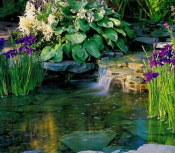 После того, как вы построите водоем, следует приступать к его оформлению. Для декорирования пруда вам понадобятся определенные виды водных растений Предпочтение отдают тем растениям, которые приспособлены расти на мелководье. Конечно, если пруд глубокий, то ваш ассортимент увеличивается вдвое. Для того, чтобы добиться хорошего результата, стоит посадить растения в специальные горшочки. Так вам за ними будет легче ухаживать, удаляя отмершие части корней и добавляя удобрения. Кроме того, это придаст некоторую аккуратность и эстетичность. Высаживать водные растения лучше всего поздней весной или даже вначале лета. Самыми распространенными водными растениями считаются водные лилии, ирисы, кубышки, кувшинки и калужницы болотные. Эти растения растут на мелководье и прибрежной части пруда. К числу наиболее неприхотливых растений можно отнести водные ирисы. Это многолетние цветы, которые имеют длинные мечевидные листья и желтые цветки. Они зимостойки и выносливы к болезням, что делает их идеальными растениями для дачных водоемов. Дизайн вашего водоема предусматривает наличие красивых камней и глыб, которые будут возвышаться на фоне пруда или мини -речки.