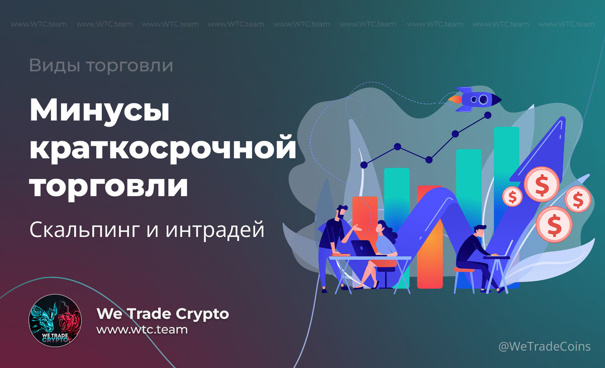 1. Сложно прогнозируемые движения рынка. При краткосрочной торговле рынок может развернуться за минуту. Соответственно, трейдеру нужно постоянно быть внимательным и сосредоточенным. 2. Необходимо наблюдать за рынком несколько часов в день. Данный вид торговли не подойдет тем, кому придется совмещать трейдинг с другой работой или бизнесом. 3. Крайне сложная торговля, требует опыта. Прибыльная внутридневная торговля требует большого опыта. Для начинающего данный вид торговли может быть сложным. 4. Много ложных движений, рыночного «шума». Много разворотов, ложных пробоев уровней. Нужно уметь фильтровать ложные движения от истинных. 5. Высока эмоциональная и психологическая нагрузка. Ввиду длительной торговли внутри дня, трейдер может испытывать сильную психологическую нагрузку и стресс. В следующих двух постах мы с вами разберём плюсы и минусы среднесрочной торговли. А пока немного отвлечёмся. Расскажите: какие ваши любимые монеты для скальпинга? WTC Telegram: https://t.me/+wPgN95Dx