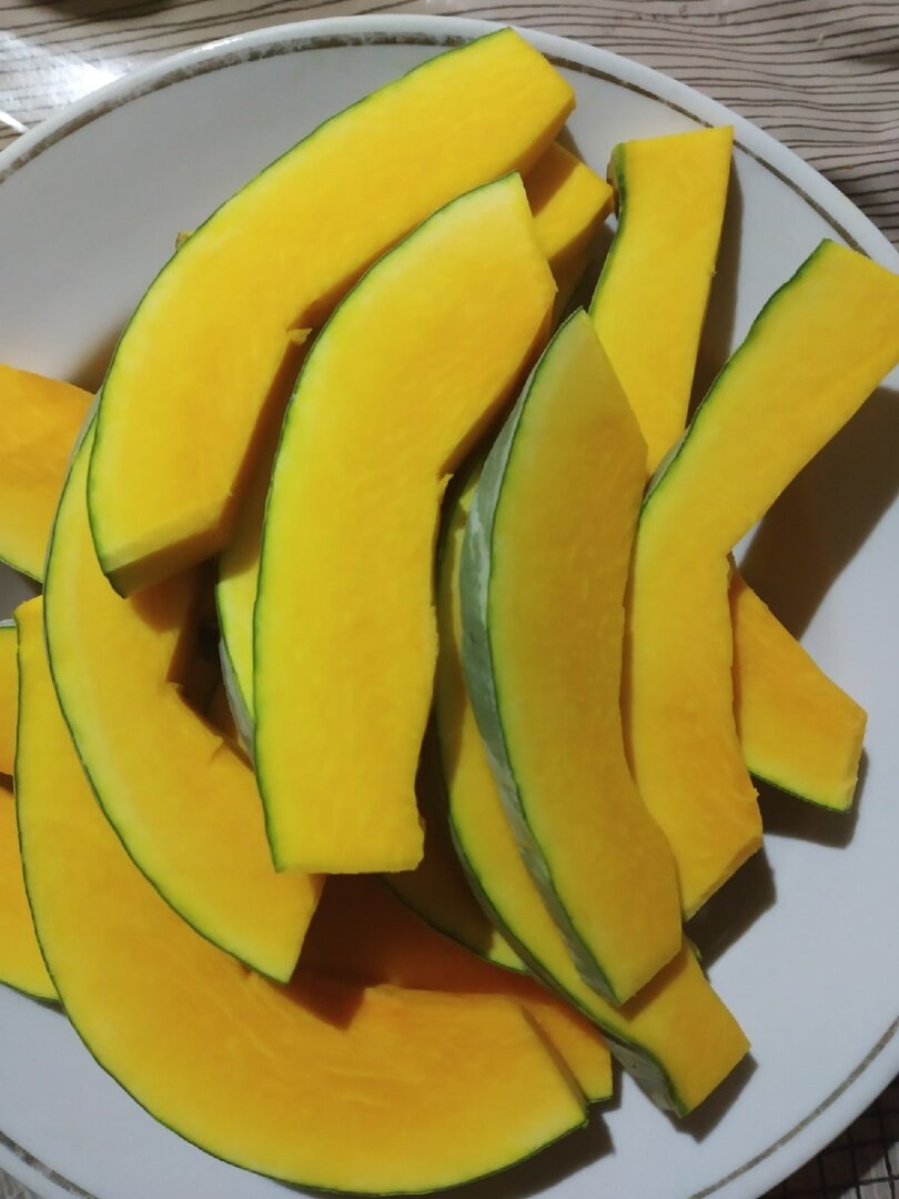 Но здесь речь пойдет только о тыкве. ))) Не судите строго: это не кулинарный блог, я не спец в приготовлении суперблюд. И красивые фото не умею делать. Я просто поделюсь своим опытом. *** Так получилось, что я никогда не готовила тыкву. Да и не ела. А тут репетитор дочери выдала нам приличную такую тыковку со своего огорода. (Если кому интересно, про репетитора я напишу отдельно: это все та же преподаватель математики, о которой знают мои постоянные читатели.) Что с ней делать… Каши мы не очень любим, то есть каша с тыквой отпадает. Во всякие пироги ее пихать – это надолго надо заводиться. В общем, великий интернет мне в помощь. Я взяла на вооружение два наиболее простых рецепта: сладкий и острый варианты. Сладкая тыква Накромсала ее вот на такие ломтики, как арбуз. )) Кстати, оказывается, у нее шкура такая твердая – еле разрезала. Все посыпала корицей. Одну часть посыпала сахаром (она ниже и темнее), другую – полила медом. Дальше все, как обычно: на пергамент, в духовку примерно на 19