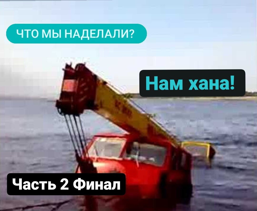 - Прыгай нах.. от туда ато можешь погибнуть. Я бросаю рычаги, и кран опрокидывает в озеро вместе с моей машиной, только теперь моё авто уже было полностью погружено в воду. Кран упал набок, хорошо что хоть не растеклись жидкости, гидромасло и бензин в озеро. Кран лежал полу боком в воде, тачка по крышу.