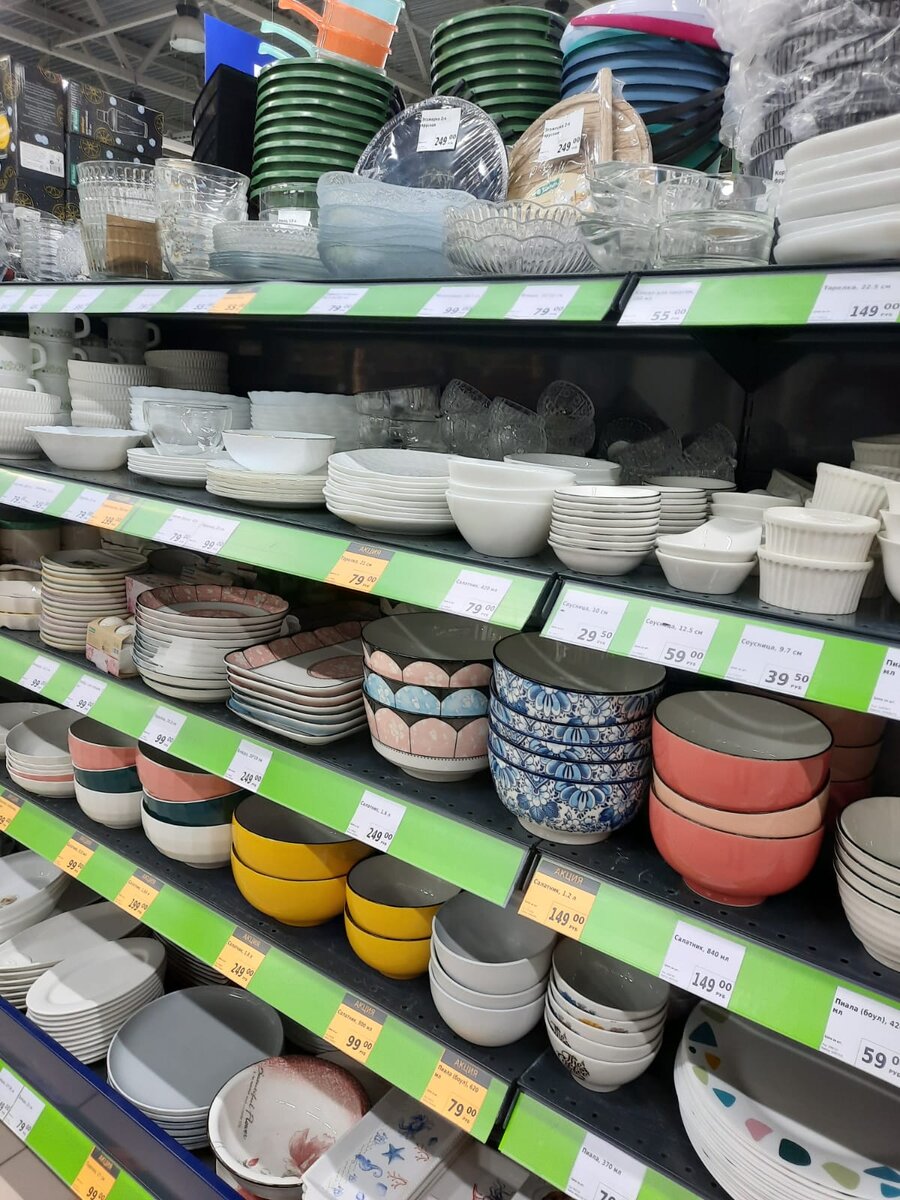 Спешу вам все показать. Буду благодарна вам за ваши "лайки" и комментарии. А вы не забудьте подписываться на мой канал. И так начнем обзор: Начнем обзор с отдела посуды: Привезли вот такие аккуратные соусницы, 9,7см Цена 39,50 рублей Состав: керамика. Эти соусницы достаточно глубокие, очень удобны под соевый соус, когда на столе роллы. Еще выставили вот такие большие бокалы, но они уже не новинка, они были в продажи раньше. Бокал для вина, 650мл Цена 249 рублей У них написаны разные высказывания на стенке. Набор овощечисток, 2шт. Цена 59 рублей Пиала, 370мл Цена 79 рублей Дулевский фарфор. Пароварка, 26см Цена 299 рублей Очень удобная штука. Это для тех, кто любит готовить на пару. У меня родители на ней разогревают хлеб, он становится мягким. Заглянем в отдел: хозтоваров сейчас: Привезли снова клеевые пистолеты, их хорошо разбирают, 220В, 59Гц Цена 249 рублей Это для тех, кто делает разные поделки. Набор стержней клеевых, 5шт,11х200 Цена 59 рублей Ледоступы для обуви,