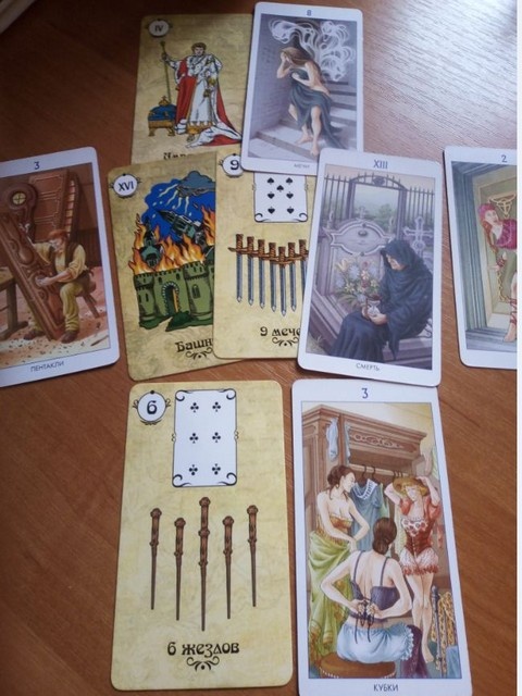 Девятка мечей указывает на дискомфорт. Возможно, возникнут непредвиденнее ситуации, требующие серьезного вложения средств. А у кого-то грядет раздел имущества.