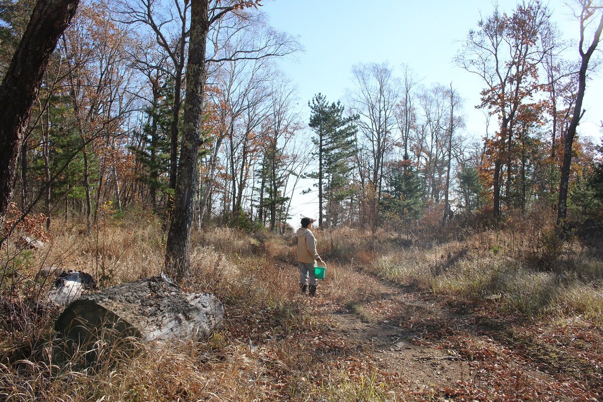 Приморье... Бескрайняя морская синева на востоке. Бескрайние волны сопок, покрытых тайгой, теряющиеся на западе. И между ними пустынный скалистый берег. Граница двух стихий - морской и таёжной. Это окрестности Дальнегорска, самого восточного города Приморского края. Большинство баз отдыха остались на юге. При продвижении на север, промежутки побережья между посёлками всё больше, а берега всё неприступнее. Природные объекты здесь не избалованы вниманием туристов, и в тишине и безвестности глядятся в море, как и многие тысячелетия назад. Вот на такое побережье мы и решили выбраться по-гибы-ягоды-орехи в последних числах октября. Идём по лесной дороге. Опавшая дубовая листва шуршит под ногами. В лесу шуршат зверушки. Изредка зашуршат кроны ещё не облетевших деревьев под слабыми порывами осеннего ветерка. Зашли на перевал. Справа, сквозь ветви деревьев синеет море. Теперь оно отдаёт накопленное за лето тепло. Поэтому на восточном склоне хребта заметно теплее. Куртки, снятые во время подъё