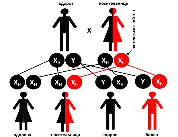 Всё к тому идёт, что человечество научится-таки редактировать-улучшать гены своих детей ещё до их рождения и получать потомство с отборными качествами, без наследственных болезней, без дефектов, даже с желаемым цветом глаз и волос, густотой ресниц, пухлостью губ, объёмом бицепса и трицепса... Ну, и так далее. Отчасти это уже и сейчас возможно благодаря технологии ЭКО (эктракорпорального оплодотворения). Пока, конечно, речь не идёт о вмешательстве в геном сперматозоидов и яйцеклеток, но уже происходит отбор лучших из них. Представьте: супруга знает, что является носительницей гена гемофилии, а ведь это очень серьёзный риск родить страдающего этим заболеванием сына. Подробнее о наследовании гемофилии вот в этой статье: А пока вот вам схема, описывающая ситуацию в этой семье: Как быть этой паре? Отказаться от деторождения? Рискнуть и быть готовыми к любым последствиям? А ведь для такой семьи сегодня уже есть 100%-ный способ получить здоровое потомство. Да, то самое экстракорпоральное опл