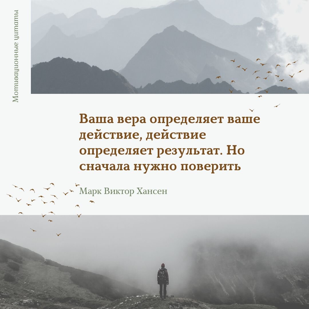 Для того, чтобы начать сложную задачу одной мотивации мало, нужна ещё вера. Вера в собственные силы, в удачу, в благоприятное стечение обстоятельств, в счастливый случай, в Бога. Чтобы написать заявление об увольнении и уйти в никуда, чтобы начать бизнес, чтобы начать ремонт, чтобы переехать в другой город, страну, чтобы разорвать отношения, чтобы победить тяжёлую болезнь, чтобы стать олимпийским чемпионом нужна вера. Вера в то, что у вас всё получится, что всё будет хорошо, что вы добьётесь того результата, который представляете в начале. Причём, неважно, во что мы верим в Бога, в деньги, в силу, в знания, в удачу. Вы верите, делаете шаг вперёд, видите результат, верите ещё больше, делаете ещё шаг и так далее по восходящей спирали. Вера работает, как самосбывающееся пророчество. Желание без веры в себя – в высшей степени бесполезная вещь. Многие люди хотели бы улучшений для самих себя – их амбиции являются живыми и хорошими, – однако они так и не испытывают мотивации. Почему? Потому ч