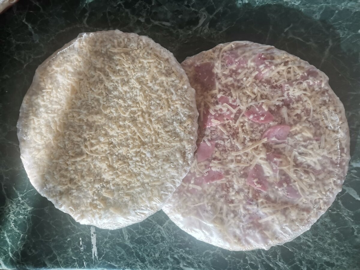 Я для дегустации выбрала те две, что были мне интересны, поэтому сейчас перед вами сырная, что стоит 155 рублей, и "студенческая", что обошлась в 145. Пиццы так же замороженные, поэтому их можно купить, отправить в морозилку до нужного момента, а приготовить уже кода-то потом - это удобно.