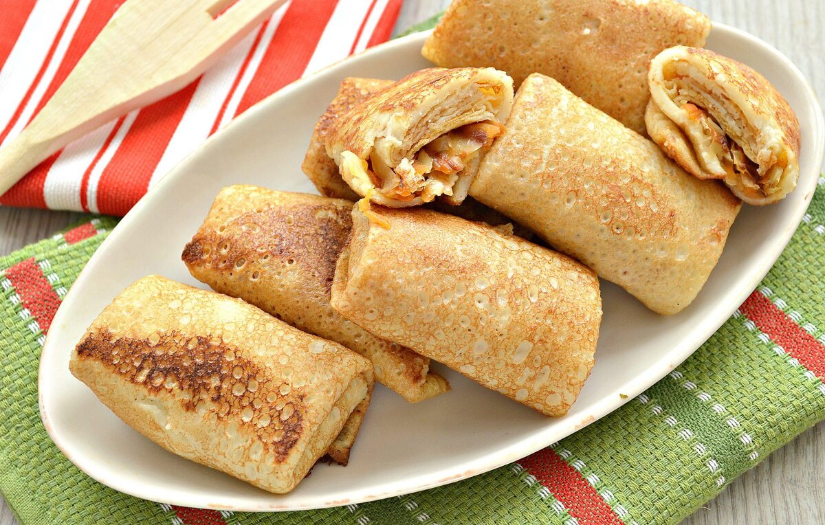 Каждый раз, когда я готовлю или ем блинчики с капустой, я всегда вспоминаю одного человека, человека, который готовил такие блинчики так, как ни один профессиональный шеф-повар не приготовит. Они были превосходны и вкуснее их, я в жизни ни у кого не ел, а мои и вовсе далеки от них. Речь идёт про мою бабушку. Практически каждый раз, когда я говорил что приеду к ней, она бежала в погреб, доставала мой любимый клубничный компот и готовила блинчики с капустой. Эх, золотые были годы. Ингредиенты: Для блинчиков: - молоко – 1 л.; - яйца куриные – 8 шт.; - мука – 450 гр.: - сахар – 2 ст. ложки; - соль – 1 ч. ложка; - масло растительное – 70 мл.; - картофель – 1 шт.; Для начинки: - капуста белокочанная – 500 гр.; - лук репчатый – 2 шт.; - морковь – 1- 2 шт.; - помидор – 2 шт. (или томатная паста – 1 ст. ложка); - соль по вкусу; - перец по вкусу; - растительное масло для жарки. Рецепт: Предлагаю начать с блинчиков. Берём глубокую миску или кастрюлю. Выливаем в неё молоко, масло, разбиваем яйца,