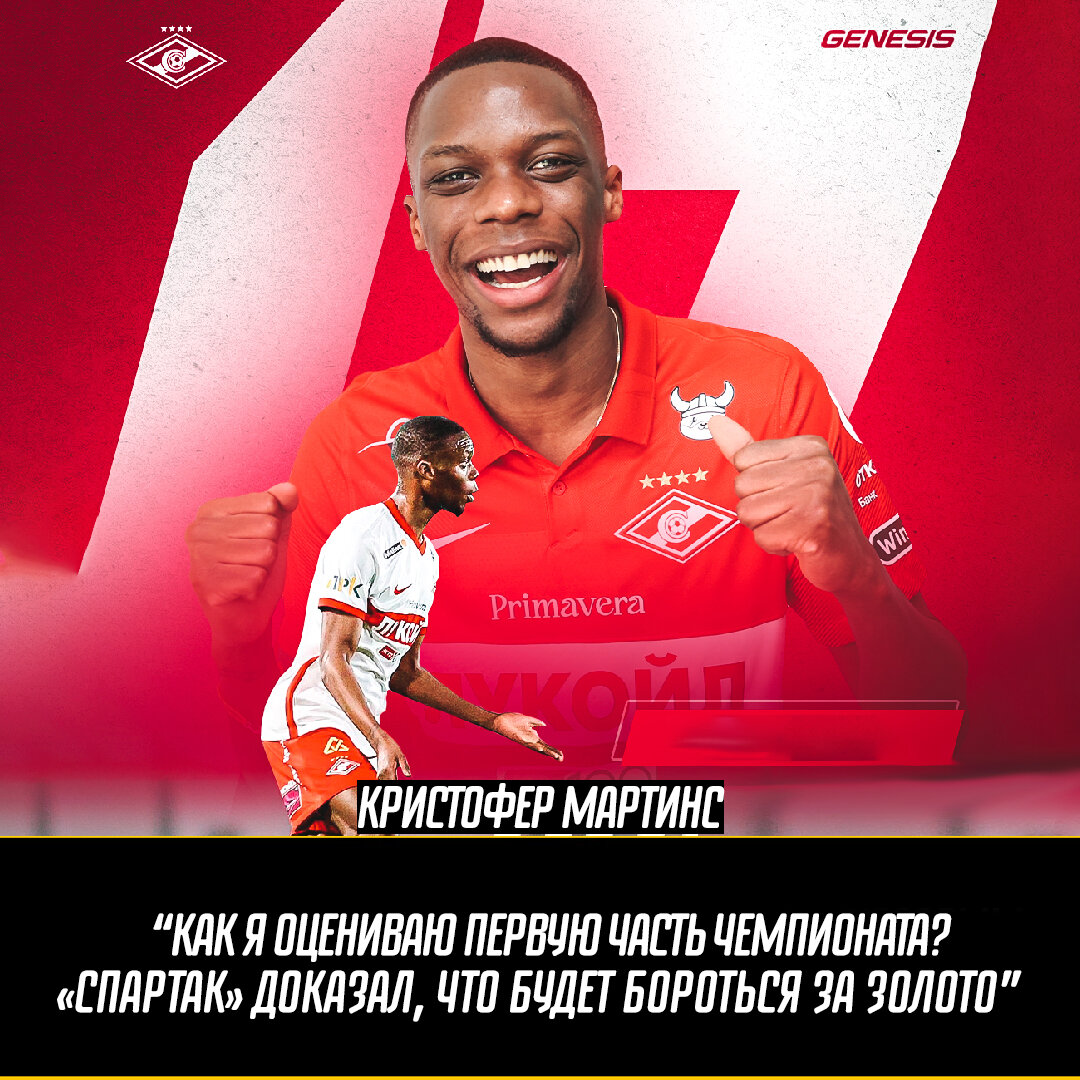 💬 «Как оценю первую часть чемпионата? «Спартак» доказал, что может и будет бороться за чемпионство», — сказал Мартинс.