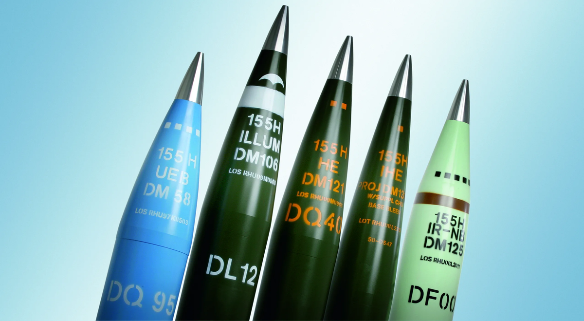Осколочные снаряды, оснащенные поражающими элементами в форме стрелы (APERS), предназначены для поражения живой силы противника. Они изготовлены из стальных и алюминиевых сплавов и состоят из корпуса, нижней части с трассером и ведущей лентой, переходной гильзы, содержащей взрывчатое вещество, и дистанционного взрывателя.