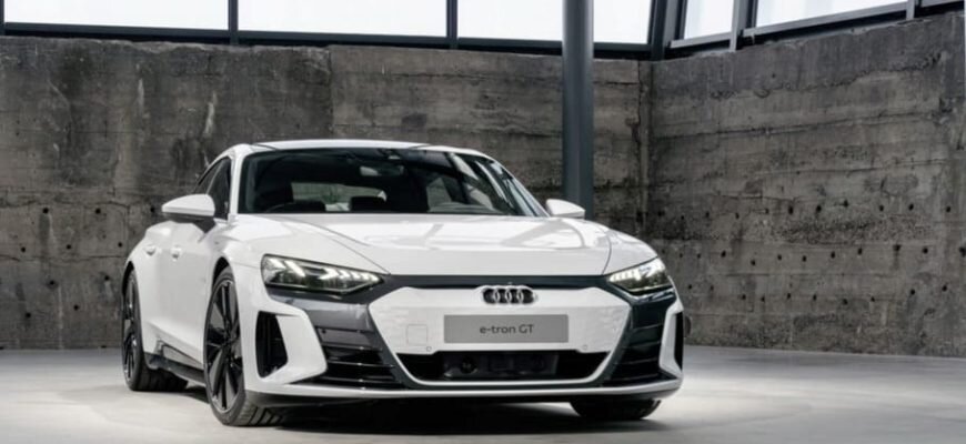 Мировая премьера нового электрического седана Audi E-Tron GT 2022 состоится 9 февраля 2021 года. Производитель называет новинку «четырёхдверным купе», хотя фактически это седан с покатой крышей. Дизайн. Автомобиль создан на базе концепта, представленного в 2018 году. Но в отличии от последнего имеет иные бамперы, измененный диффузор, традиционные дверные ручки, другие колесные диски и более функциональные зеркала заднего вида. Технические характеристики. Автомобиль будет предлагаться в двух полноприводных версиях. Стандартный e-Tron GT имеет передний электродвигатель пиковой мощностью 238 л.с. и задний на 435 л.с. Суммарная мощность установки составляет 476 л.с. и 630 Нм. Однако на 2,5 секунды мощность может увеличиваться до 530 л.с. и 640 Нм. Разгон с 0 до 100 км/ч занимает 4,1 секунды, максимальная скорость — 245 км/ «Заряженная» модификация RS e-Tron GT имеет спереди электромотор, как у обычной (на 435 л.с.), а задний выдает уже не 435, а 456 сил при суммарной отдаче 598 л.с. и 83