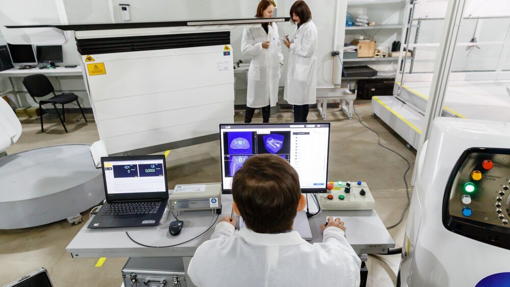 «НИИЭФА разрабатывает оборудование для получения изотопов с 1945 года, установки для радиационной терапии — с 1963 года, — рассказал гендиректор НИИЭФА Евгений Сакадынец. — В продуктовой линейке — циклотроны, в том числе оснащенные локальной защитой, мишенными устройствами и системой транспортировки пучка к удаленным аналитическим камерам, с диапазоном энергии от 5 до 80 МэВ. Есть линейные ускорители электронов с многолепестковыми коллиматорами, обеспечивающие возможность облучения электронным и тормозным пучком, гамма-томографы, медицинские лазеры, коронарные стенты из медицинской нержавеющей стали и кобальтхромового сплава».