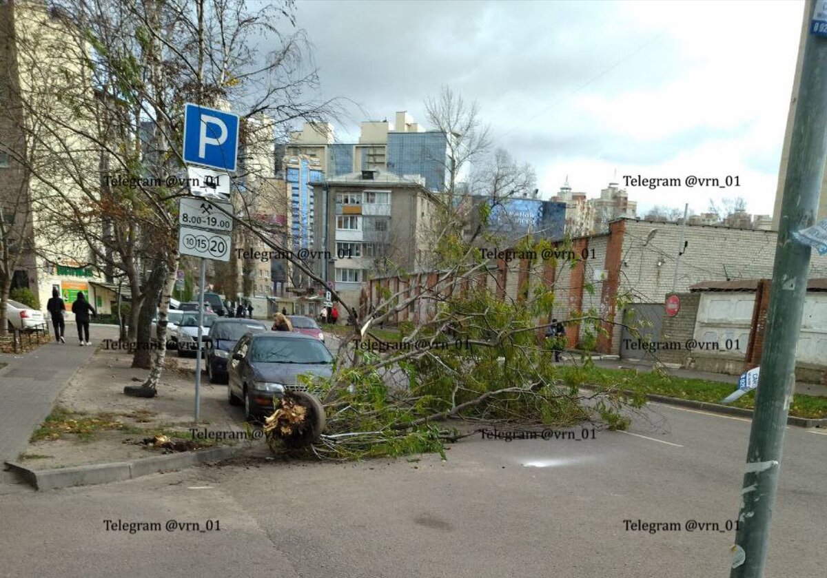 В Воронеже сильный ветер повалил несколько деревьев и снес забор