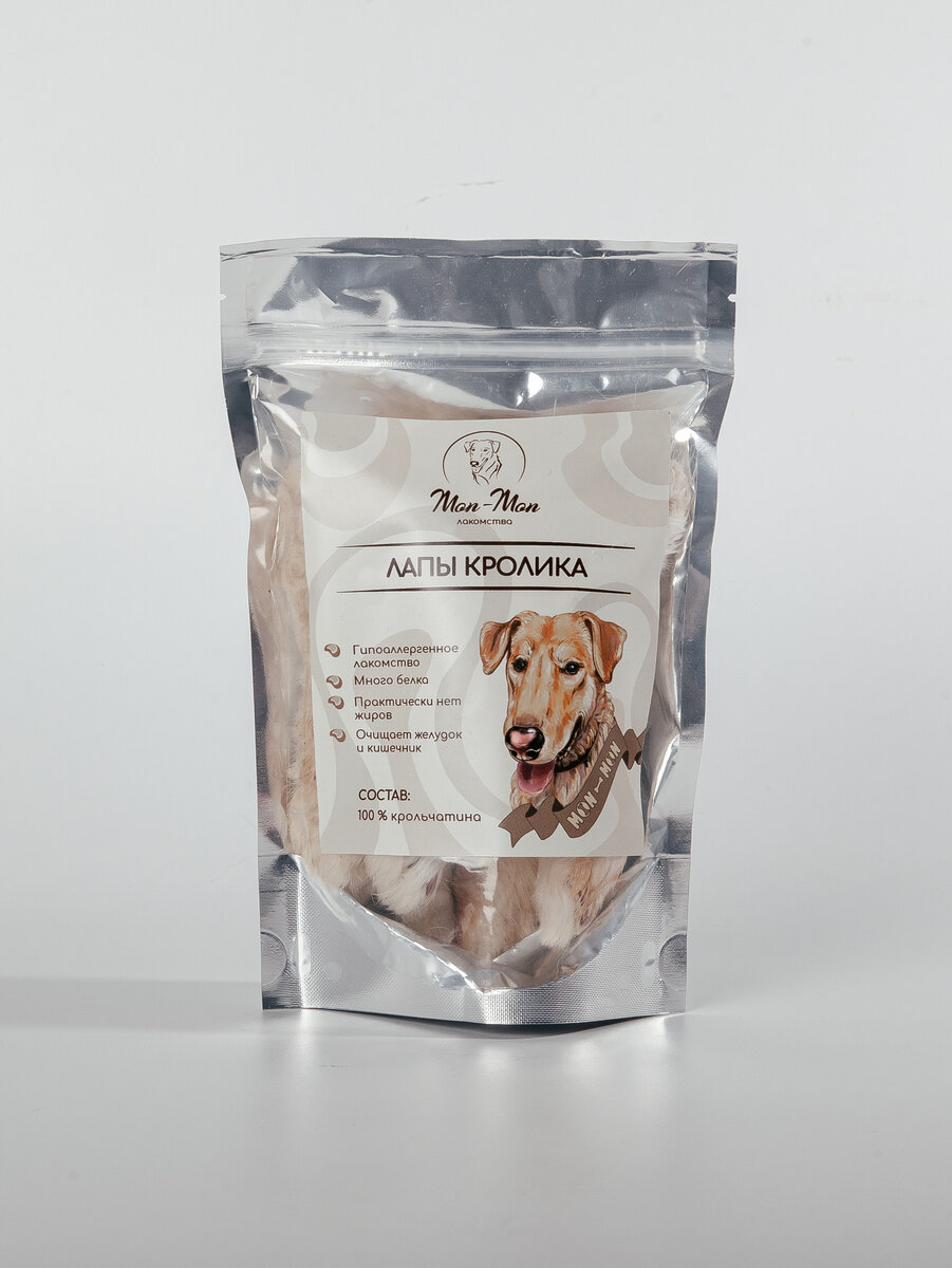Лапки кролика – это натуральное и полезное лакомство для собак и кошек. Которое подходит питомцам, страдающим от аллергии на говядину и курицу. Крольчатина богата белком, в ней содержится меньше жира и холестерина, чем в других видах мяса. По этой причине мясо кролика даже было рекомендовано Всемирной организацией здравоохранения (ВОЗ) в качестве идеального продукта для детского питания. К тому же, мех на лапках кролика естественным образом очищает стенки кишечника собаки, оказывая тем самым эффект дегельминтизации. Вы хотели бы побаловать вашего питомца вкусняшкой, но он находится на строгой диете из-за лишнего веса? Лапки кролика самая натуральная и диетическая продукция, которую можно давать пару раз в неделю даже собакам, соблюдающим диету. А если у вас щенок крупной породы, или (не дай Бог) имеются проблемы с суставами, то лапки кролика просто необходимы вашему питомцу. Косточки и хрящи в кроличьих лапках являются натуральным источником хондроитина и глюкозамина. Хондроитин актив