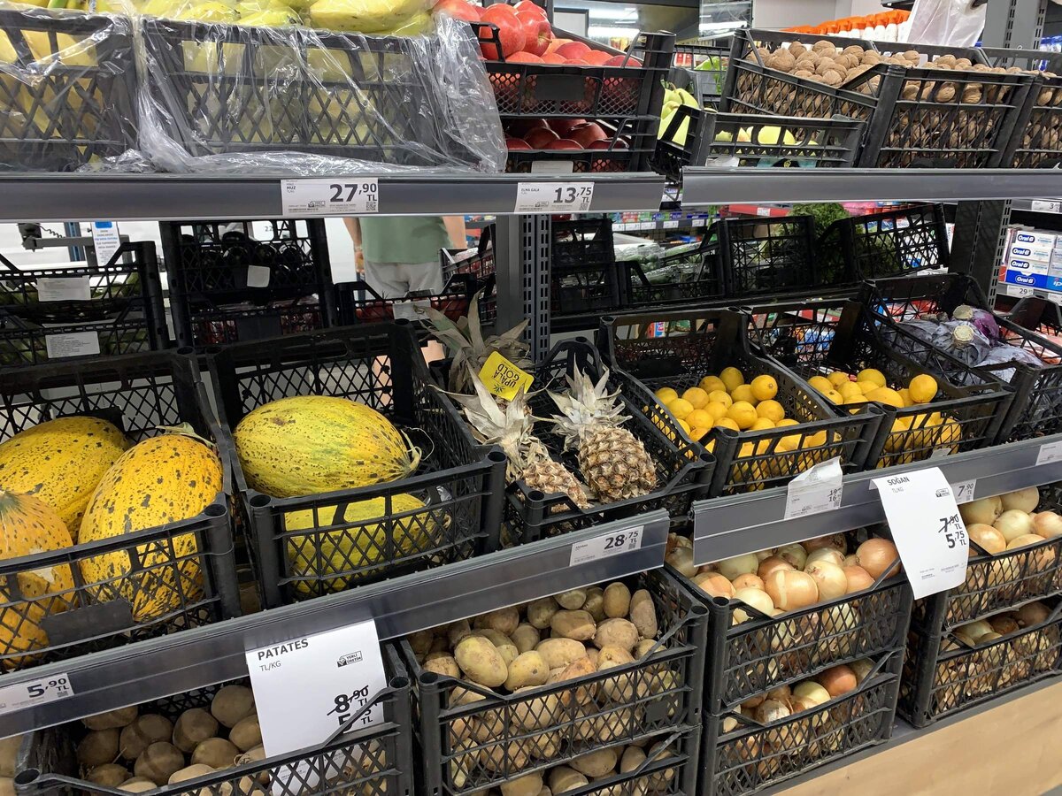Цены в Турции меняются в зависимости от курса, но на протяжении долгих периодов времени остаются сравнительно стабильными. Сегодня давайте поговорим о стоимости продуктов, которые можно купить в обычном супермаркете. Я укажу цены в лирах, сейчас для перевода в рубли умножаем на 3,5, а при изменении курса вы сможете пересчитать самостоятельно. Овощи и фрукты Яблоки (сорт гала) – 13,75 лир за килограмм (48 рублей). Лимоны 19,9 лир за килограмм, 16,9 лир со скидкой (70 рублей и 60 рублей соотвественно). Картошка 8,9 лир, 5,75 лир со скидкой (30 рублей и 20 рублей) Репчатый лук 7,9 лир, 5,75 лир со скидкой (27 рублей и 20 рублей) Подсолнечное масло 36 лир за литр, 66 лир за 2 литра (126 рублей и 231 рубль) Рис Самая популярная из обычных круп. Стоит 13-25 лир за килограммовую пачку. Сейчас это 45-88 рублей на наши деньги. Молочные продукты Молоко 12,6-16,5 лир (44-58 рублей) за литр Айран стоит примерно столько же Творожный сыр 50-60 лир за 750 граммов (175-210 рублей) Печенье Из обычных с