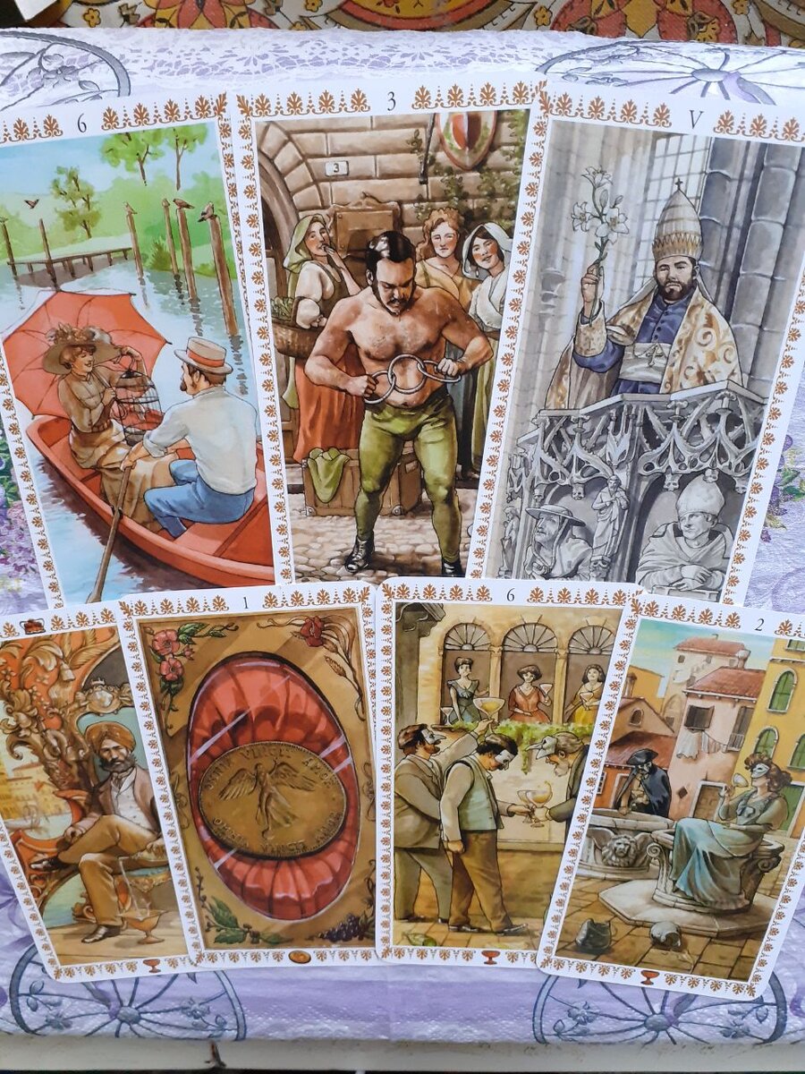 Шестёрка кубков говорит о том, что Вас связывает с этим мужчиной общее прошлое, память, воспоминания... Это будет появление партнёра из прошлого, попытка возврата прежней влюблённости, прежних отношений...