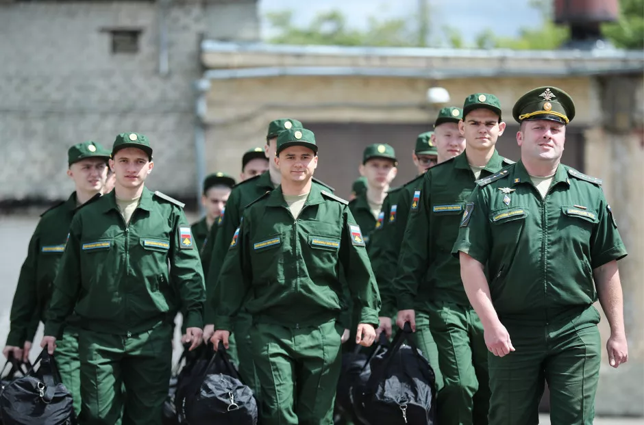 Призывники принимают присягу после прохождения начальной военной подготовки, которая длится в среднем 30 дней.