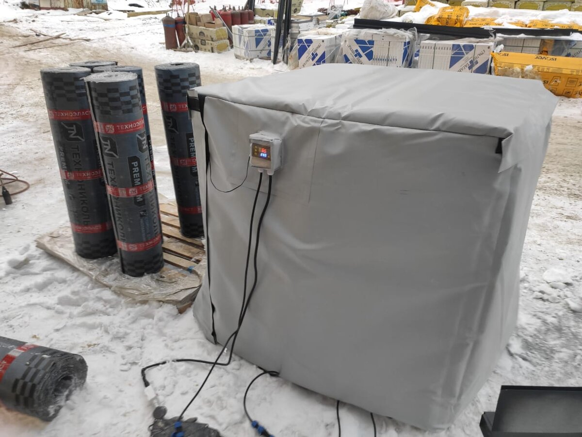 Кровельные работы затянулись до зимы и еще не закончены? Совсем не обязательно прерывать работы до весны — к счастью, современные технологии и полезные изобретения позволяют работать даже при минусовых температурах. Кровельные работы (особенно если вы выбрали мягкую/гибкую кровлю) обычно зимой не проводят: погодные условия нужно учитывать обязательно, как и осадки (например, наливное битумное покрытие нельзя укладывать при мокрой погоде). Если работать с битумно-полимерными составами, нужно, чтобы температура и материала, и окружающей среды была выше температуры гибкости. Можно выдерживать материал при температуре от +15°С (не менее суток) и приносить на место монтажа прямо перед использованием, но не всегда есть достаточно просторная «теплушка» и возможность оперативной доставки. Потому проще использовать термочехол с электрообогревом. Такой инструмент в марте 2021 года на рынок вывела компания ТЕХНОНИКОЛЬ, и он уже пользуется устойчивым спросом у партнеров по России и СНГ, так как