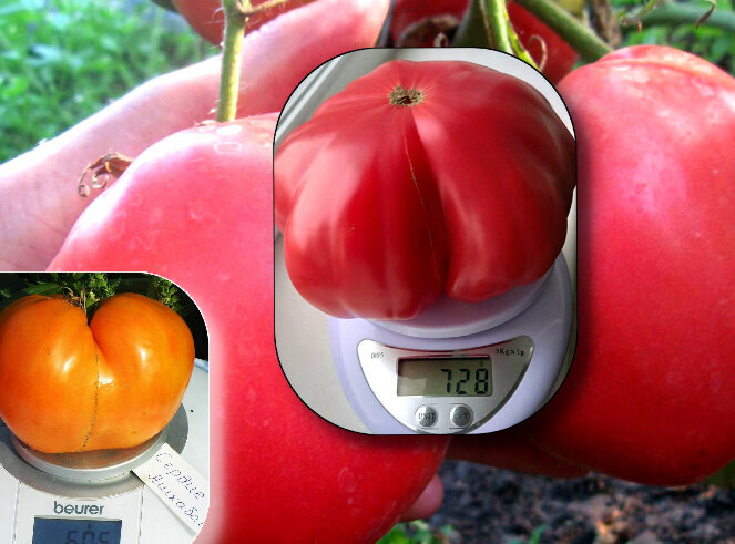 Каждый год мы все добавляем несколько новых сортов, которые уже имеют хорошую репутацию. Сильно крупные помидоры я не выращиваю, веду все сорта в два ствола и урожай всегда получаю достойный. У меня ежегодно в приоритете кистевые томаты, но они для консервации в основном... По рекомендации моих друзей я приобрела семена крупноплодных сортов, урожай которых меня просто поразил! И не только высокий показатель урожайности у этих сортов - помидоры очень вкусные, красивый товарный вид, устойчивость и главное, что эти сорта применимы для моего региона (покупала у коллекционеров своего города, т.е. сорт районирован (Омск) Томат Сердце Ашхабада Крупные оранжевые помидоры этого сорта имеют среднюю массу в 300-400 г, сердцевидную форму. Мякоть под кожицей мясистая, ароматная. Сорт высокоурожайный. С куста удается собирать до 6 кг плодов. Высота достигает 110-150 см. Растение крепкое, центральный стебель толстый, хорошо держится, из-за чего сорт иногда называют штамбовым.