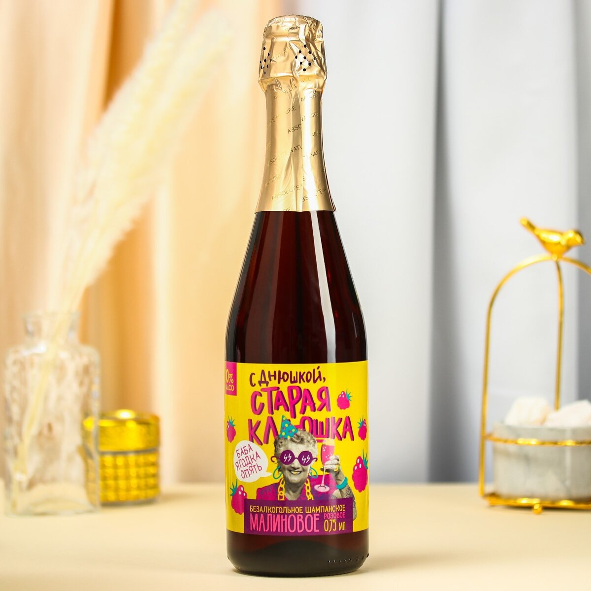 Новый год или день рождения — не важно, на какой праздник вы собрались. Главное — взять с собой подходящий подарок для милого друга или подруги. Ничто так не сближает, как чувство юмора, поэтому обратите внимание на эту подборку. Когда пить уже нет сил, в ход идёт безалкогольное шампанское. Вспомните вкус детства и насладитесь малиновым ароматом. Да и разливать есть, куда — только посмотрите. Фото 1. Безалкогольное малиновое шампанское «С днюшкой»