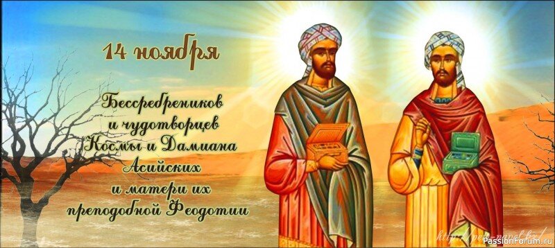 Сегодня совершается память святых бессребреников и чудотворцев Космы и Дамиана Асийских и матери их преподобной Феодотии. Святые Косма и Дамиан были врачами, лечившими людей и животных бесплатно. Преподобная Феодотия воспитала своих сыновей в духе истинной веры и благочестия. Отец святых братьев умер рано и был язычником, его имя в истории не сохранилось. Родиной чудотворцев была римская провинция Асия, которая располагалась на территории современной Турции. Не стоит путать святых бессребреников Косму и Дамина Асийских с мучениками Космой и Дамианом Римскими и с Космой и Дамианом Аравийскими. Асийские бессребреники творили многие чудесные исцеления как для людей, так и для животных. С самого начала своей деятельности братья договорились не брать ни с кого никакой платы, вспоминая слова Самого Господа Иисуса Христа: «Даром получили, даром давайте» (Мф 10. 8). Однажды между братьями случилась ссора. Они исцелили тяжелоболящую женщину по имени Палладия, от которой отказались все вра