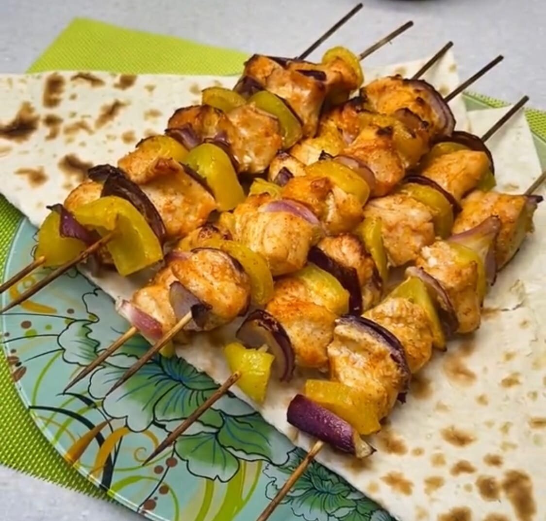 Когда заканчивается летний сезон, из рациона уходит одно из самых любимых мясных блюд – это шашлык. Но наступление холодов еще не повод лишать себя такого вкусного удовольствия, ведь шашлычки всегда можно приготовить дома, в духовке. А если правильно замариновать мясо, то шашлычки получатся очень сочными, а вы сможете побаловать себя летним блюдом даже зимой. А еще это хорошая идея в преддверии праздников. Ведь это полноценная порционная закуска, яркая и очень вкусная. Ингредиенты · Филе куриной грудки · Перец болгарский – 1 штука · Лук репчатый (лучше брать красный) – 1 штука Для маринада: · Масло (по вашему предпочтению оливковое или подсолнечное) – 100 мл · Мед – 1 столовая ложка · Соль · Паприка · Сухой чеснок Готовим Для начала нужно подготовить маринад. Для этого в глубокую миску выливаем масло. К маслу добавляем ложку меда и хорошо перемешиваем. В масляную смесь добавляем соль, паприку, чеснок, так же можно использовать любимые специи. Филе куриной грудки режем на порционные