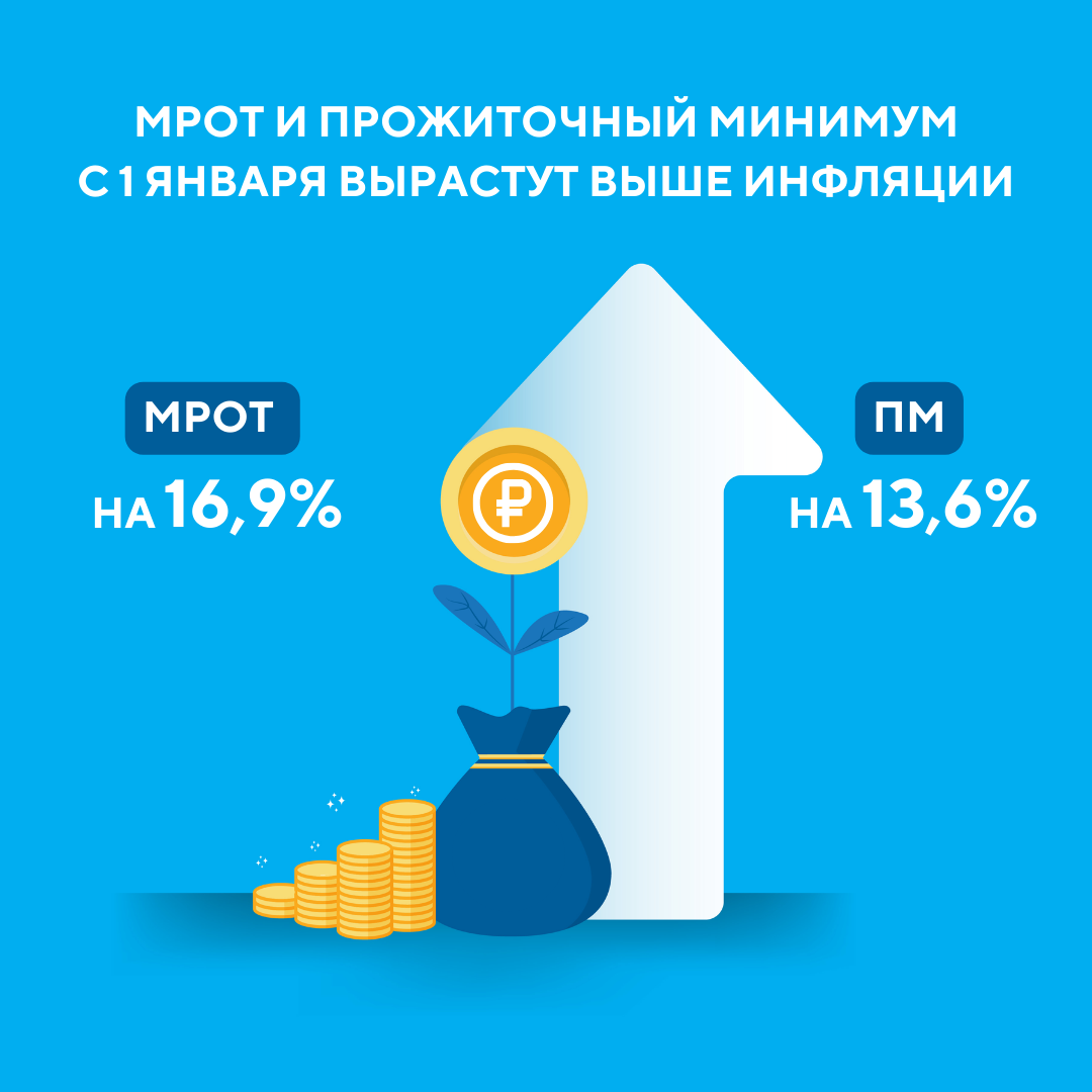 За полный год минимальная зарплата в России будет суммарно проиндексирована на 16,9%, а прожиточный минимум – на 13,6%.