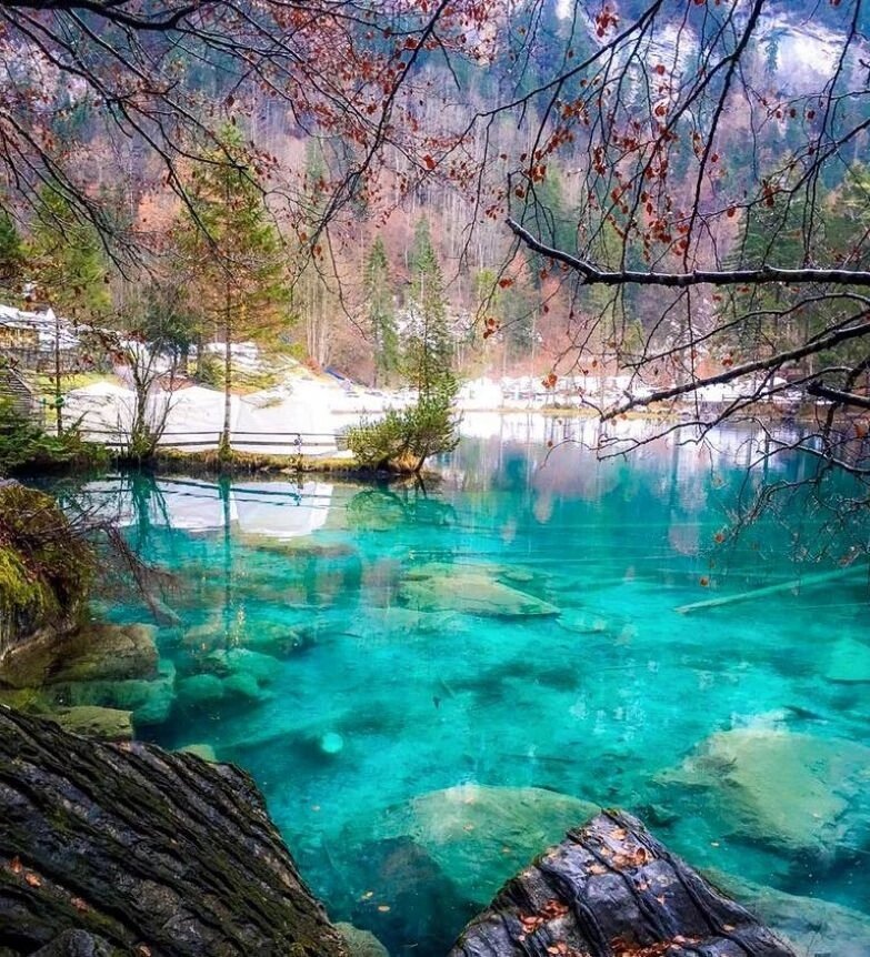 Небольшое швейцарское озеро Блаузее является одним из самых романтичных и живописных мест в этой альпийской стране. Местные жители называют его самым голубым из всех голубых озер Швейцарии. Секрет удивительно пронзительного изумрудно-голубого цвета — подземные источники, которые круглогодично питают озеро кристальной водой. Озеро находится в центре одноименного природного парка, который занимает площадь 20 га в центральной части Швейцарии. Площадь самого озера — 0,65 га.
