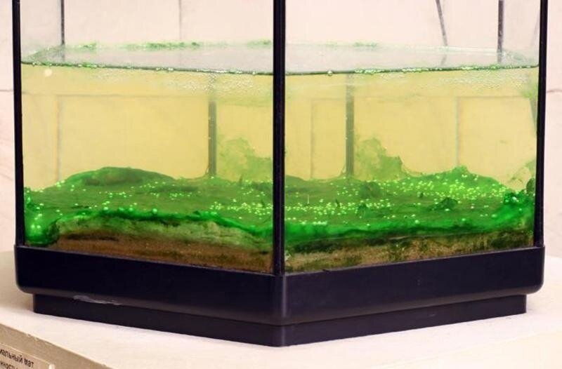 Первым, что встретит нас у поверхности мата, будет прозрачная плёнка из органических соединений. Под ней расположены плантации фотосинтезирующих автотрофов. Они — главные продуценты, создающие питательные вещества из растворённой в воде неорганики. Для этого им нужен свет.
