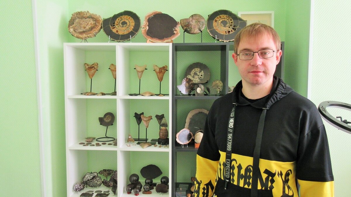 Зимой этого года я оборудовал стеллажи с экспонатами в офисе в центре Сергиева Посада, а до этого все предметы хранились у меня дома. Но именно как экспозицию я это не рекламировал. Кто-то знает про нас, но в основном посетители заходят редко. У меня специфические экспонаты, а сейчас время непростое, поэтому интерес поубавился. Тем не менее, спрос есть. Люди берут окаменелости себе в коллекцию или на подарки. Самой большой популярностью пользуются зубы мегалодона и аммониты.