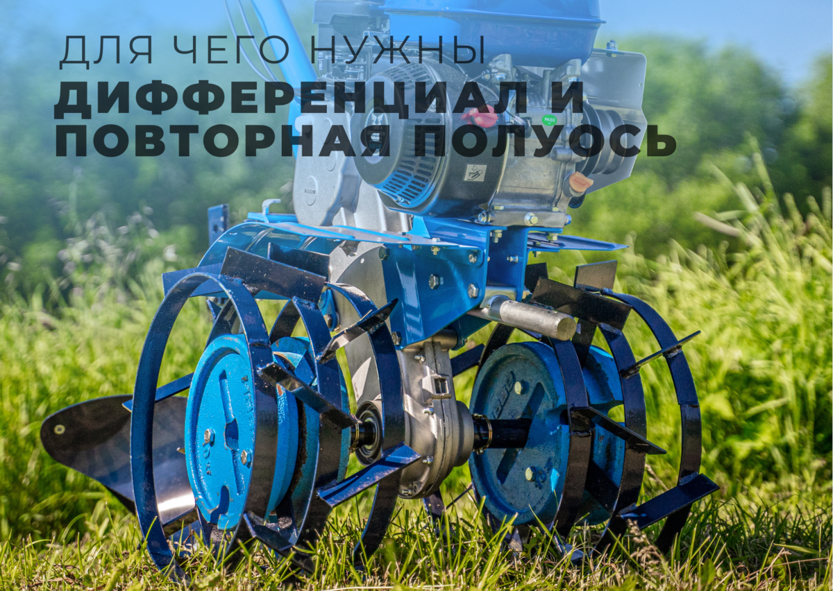 Дифференциал и поворотная полуось в мотоблоке - это технические элементы, благодаря которым можно развернуть мотоблок на месте с минимальными усилиями. Отсутствие этих деталей вызывает спрямление движения оси, в силу чего увеличивается расстояние между колесами агрегата, а это усложняет поворот мотоблока. Дифференциал представляет собой механизм силового привода, который оснащен несколькими колесами на одной оси. Он предназначен для распределения мощности между колесами агрегата для избежания пробуксовки. Дифференциал считается более надежным техническим элементом, нежели поворотная полуось, потому что благодаря нему мотоблок можно развернуть даже при различном сцеплении колес с поверхностью. Мотоблоки с дифференциалом идеально подходят для работы на крупных участках.