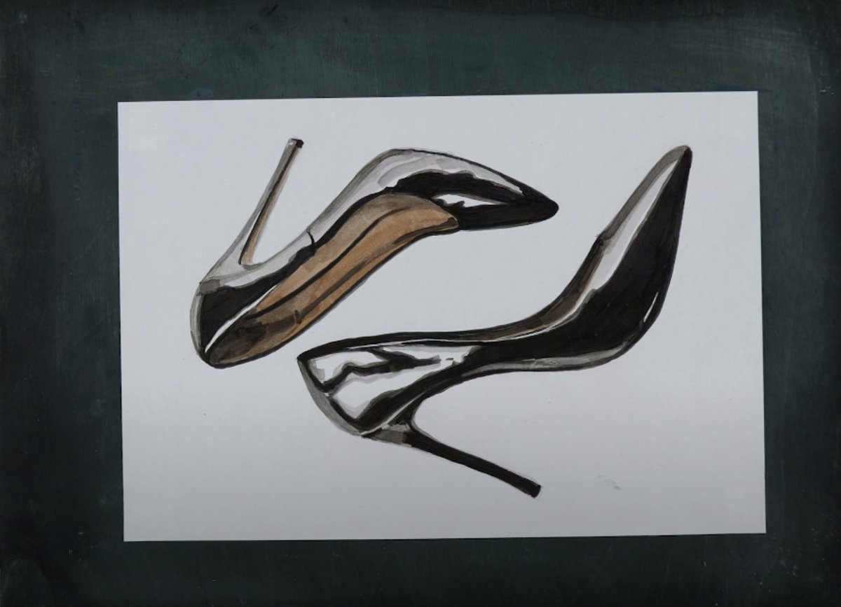 Преподаватель: Анастасия Брагина Вместе с преподавателем проекта Художник Online Анастасией Брагиной нарисуем быстрый скетч маркерами и узнаем, как правильно изобразить лаковые туфли и показать их глянцевую поверхность! Что получится в результате: Необходимые материалы: Шаг 1 Начинаем с карандашного наброска — схематично намечаем основные объемы объектов. Совет: так как форма туфель достаточно сложная, на этом этапе лучше рисовать её «насквозь», обозначая линии и грани, которых не должно быть видно (например, стельки). Это не позволит сделать ошибки в пропорциях.