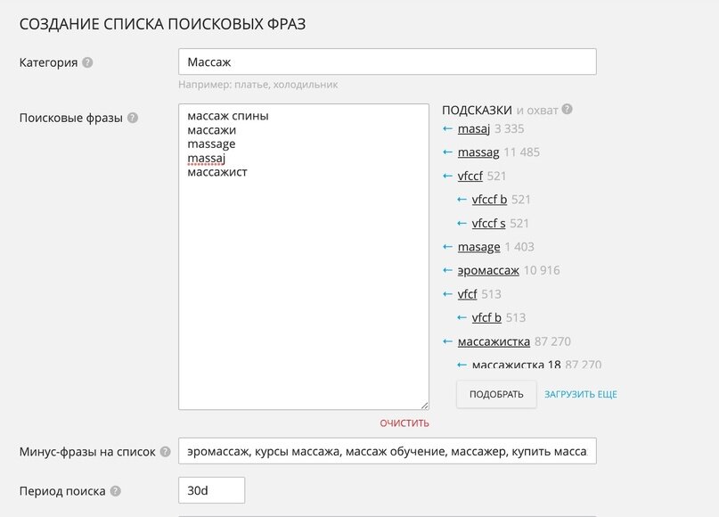 Недавно мы решили попробовать совместить на платформе MyTarget настройку по ключевым фразам с собранной ранее аудиторией по МАС-адресам. МАС-адреса — это идентификаторы устройств, с которых люди заходят в социальные сети, а также адреса Wi-Fi точек. То есть, по сути это точечная настройка по геоположению. Мы можем показывать рекламу тем, кто заходил в социальные сети недалеко от нужного нам места или даже подключался к местному Wi-Fi. Как мы настраивались в MyTarget Для начала заходим в раздел “Контекстный таргетинг” и настраиваем список. Добавляем в него как обычно ключевые слова, минус слова, период поиска. Эта настройка хорошо знакома тем, кто хоть раз пытался самостоятельно настраивать рекламу через MyTarget для ее показа в Одноклассниках или, например, Вконтакте. Список предлагаемых ключевых фраз несколько скуднее, чем во Вконтакте в аналогичном разделе. Но, судя по нынешним изменениям, нас ожидает грандиозное слияние рекламного кабинета Вконтакте и MyTarget, так что, возможно,