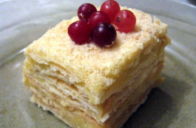 - Украсить сметанный торт по желанию и поставить в холодильник на 3-4 часа. Когда торт пропитается кремом, он станет очень многослойным, нежным и мягким.