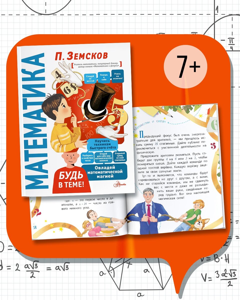 Не всем легко дается математика. И нередко проблема не в самом ученике, а в том, что ему не подходит методика обучения. Или в том, что в нужное время он не заинтересовался наукой, а испугался сложных терминов или примеров. Собрали для вас книги, которые помогут решить эту проблему. 📕Пётр Земсков «Математика» (7+) Пётр Земсков убеждён, что математические задачи сравнимы с чудесами, а любые фокусы можно объяснить с точки зрения науки. Не верите? Тогда прочитайте эту книгу и будьте в теме! 📙«Всё, что нужно знать, чтобы не быть слабаком в математике» (12+) Эта книга‑конспект — действительно уникальное издание! Ведь всё, что поможет вам освоить азы математики, содержится на страницах этой книги. К тому же, все понятия и важные правила выделены шрифтом или цветом, имеются поясняющие рисунки, схемы и таблицы. 📒 «Математика в занимательных рассказах» (10+) Книга Якова Перельмана поможет читателю понять теорию вероятности, разгадать загадку пирамиды Хеопса и вместе с героями Жюля Верна, Гер