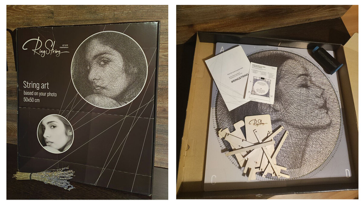 RingString – это набор по созданию картины из любой фотографии с помощью непрерывной нити. Самое интересное, что даже самый неопытный художник (и даже вовсе не художник) может создать любой портрет. Как сказал мне приятель, главная фишка – полное погружение в процесс и приятная медитация.