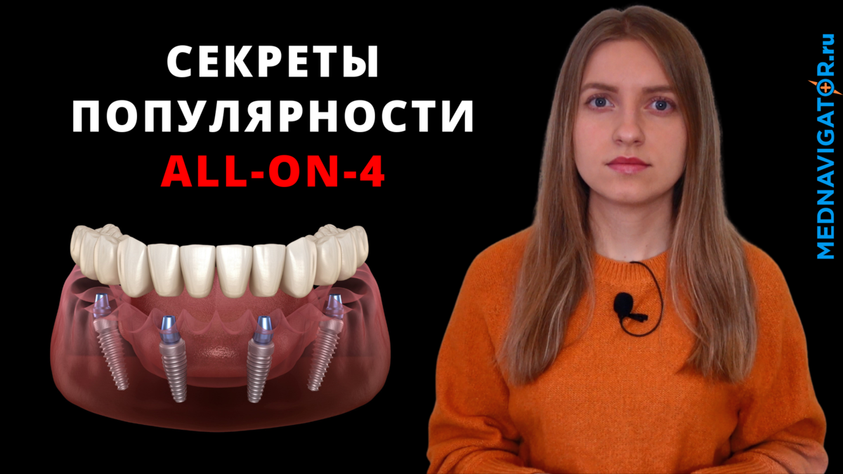 В России и странах СНГ остро стоит проблема полной вторичной адентии, то есть утраты зубов верхней и нижней челюсти. После 60 лет с этим сталкивается более 25% населения. Съемное протезирование (т.е. пресловутые зубы в стакане) является сомнительным решением и не устраивает многих пациентов по эстетическим и функциональным свойствам. Идеальным решением проблемы адентии является имплантация зубов. Однако восстанавливать весь зубной ряд отдельными единицами имплант + абатмент + коронка (10-14 единиц на челюсть) очень дорого, долго и не всегда технически возможно из-за дефицита костной ткани. Решением этого противоречия стало внедрение технологии All-on-4 (Все на 4).