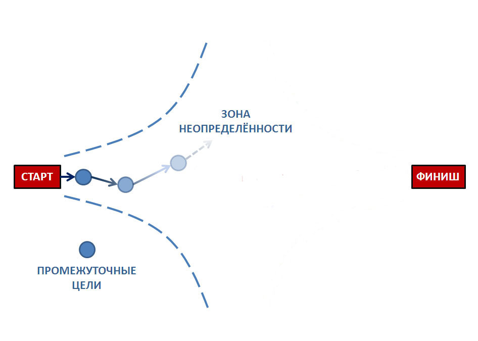 АВТОР: Владимир Зулкарнеев Свободны ли мы в своих поступках, или есть какая-то «высшая сила», которая нас ведёт по жизни? Предопределено ли наше будущее? Эти вопросы касаются и отдельного человека, и всего человечества. Количество сломанных копий «за» и «против» в холиварах не поддаётся исчислению, однако неопровержимых фактов, подкреплённых железобетонными аргументами, за тысячелетия так и не появилось. Что ж, раз нет прямых доказательств, можно поискать косвенные. В качестве предмета исследования выберем планирование человеком своего жизненного пути. Для простоты и наглядности возьмём школьника, который твёрдо решил стать генералом. Как это происходит, показано на рисунке. Своей первой промежуточной целью он ставит успешное окончание школы и хорошую физическую форму для поступления в военное училище. Тут особых вопросов не возникает, цель ясно видимая и всё зависит от собственного старания. Дальше уже сложнее. Можно сразу попытаться поступить, но какой будет конкурс и какой потребуе