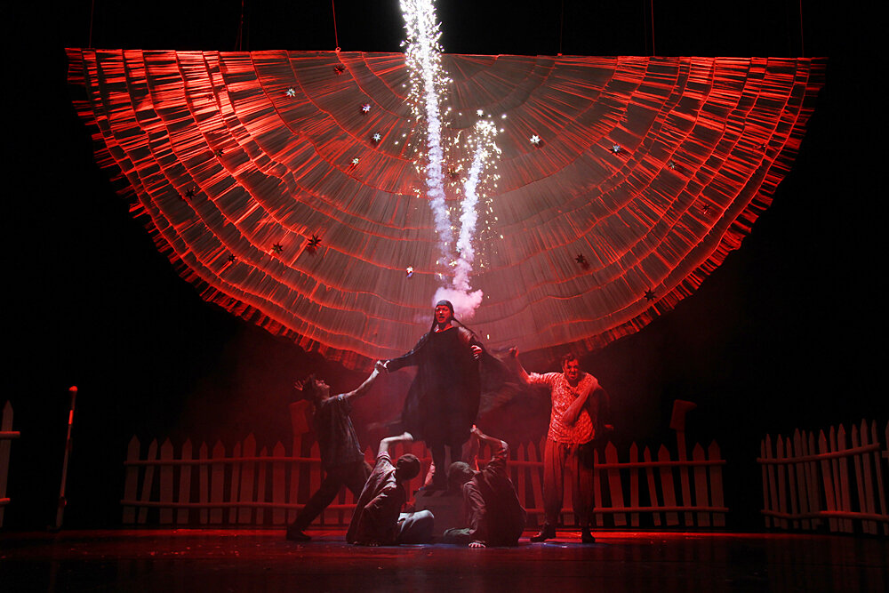 МХТ им. Чехова "Конёк-Горбунок" В воскресенье, 13-го ноября открыли новый детский театральный сезон, чем открывающий был весьма недоволен. В это состояние его ввергла продолжительность спектакля. 2 часа 40 минут с одним антрактом - это ж с ума сойти как долго!!! Ближе к концу первого действия 1 час 20 минут) я была готова с ребенком согласиться. Хехе. Возрастной ценз 6+. Интересно, где они таких усидчивых шестилеток видали? Я по отзывам составила список спектаклей, что обязательно надо показать детям. Мхатовский "Конёк-горбунок" в десятке. Хвалят очень. И театральных премий ему в свое время отсыпали. И идёт на сцене лет уже ...надцать. С аншлагами. Спектакль действительно хорош. Но не для 6+ Мало того, что "Конек" длинный, так он ещё радует обилием взрослых шуток. Начиная от страшной охоты братьев Вани непременно и поскорее жениться, заканчивая одесским колоритом морского царства и привычной бюрократией в небесной канцелярией. Последняя умилительно жизненна и так узнаваема в