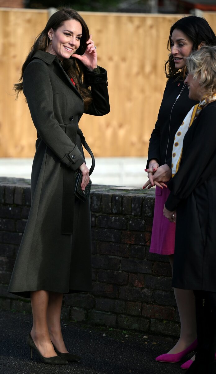 Разбираемся, что же так привлекло внимание пользователей сети. Еще больше новостей в нашем Telegram-канале, группе ВКонтакте и канале Яндекс.Дзен ______________________________ Искать тайные знаки, которые намекали бы на беременность, в образе той или иной знаменитости – любимое занятие поклонников светской хроники. Что уж греха таить, наше тоже. Но фанаты Кейт Миддлтон превзошли всех. После вчерашнего выхода принцессы Уэльской в свет все только и говорят, что о ее четвертой беременности. В чем же дело? В среду, 9 ноября, Кейт посетила детский перинатальный центр Colham Manor Children's Centre в Хиллингдоне, районе Лондона. Для визита она выбрала довольно бюджетный образ, не считая аксессуаров: оливковое пальто Hobbs London с поясом, трикотажное платье Mango в рубчик, туфли Gianvito Rossi, клатч Jimmy Choo и серьги Kiki McDonough. Однако все обратили внимание не столько на монохромный стильный наряд, сколько на ее прическу. Герцогиня, которая еще в начале месяца была средне-светлой шат