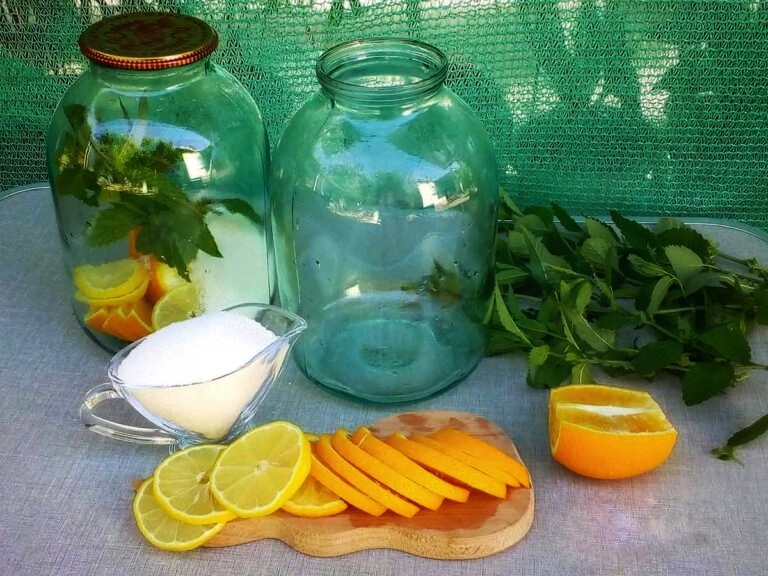 ИНГРЕДИЕНТЫ: На банку объёмом 3 литра: 1 апельсин весом около 250 г 2 дольки лимона 200 — 250 г сахара Мята 1 веточка ПОШАГОВЫЙ РЕЦЕПТ ШАГ 1 Банки для компота я не стерилизую, просто хорошо промываю их содой и выполаскиваю. Апельсин и лимон очень хорошо промываем, нарезаем дольками. Мяту промываем холодной водой. В каждую банку накладываем по 1 апельсину дольками и 3-4 дольки лимона, веточку мяты и стакан сахара. ШАГ 2 Заливаем все кипятком до самого горлышка. ШАГ 3 Закупориваем банки крышками, переворачиваем вверх дном, укутываем плотной тканью или одеялом и оставляем в таком положении до полного остывания. ШАГ 4 Отправляем баночки с апельсиновым компотом — мохито, в подвал или кладовку. Даем напитку настояться минимум неделю и можно пробовать. Храниться безалкогольный домашний мохито с лимоном и апельсином очень хорошо, обязательно попробуйте его приготовить.