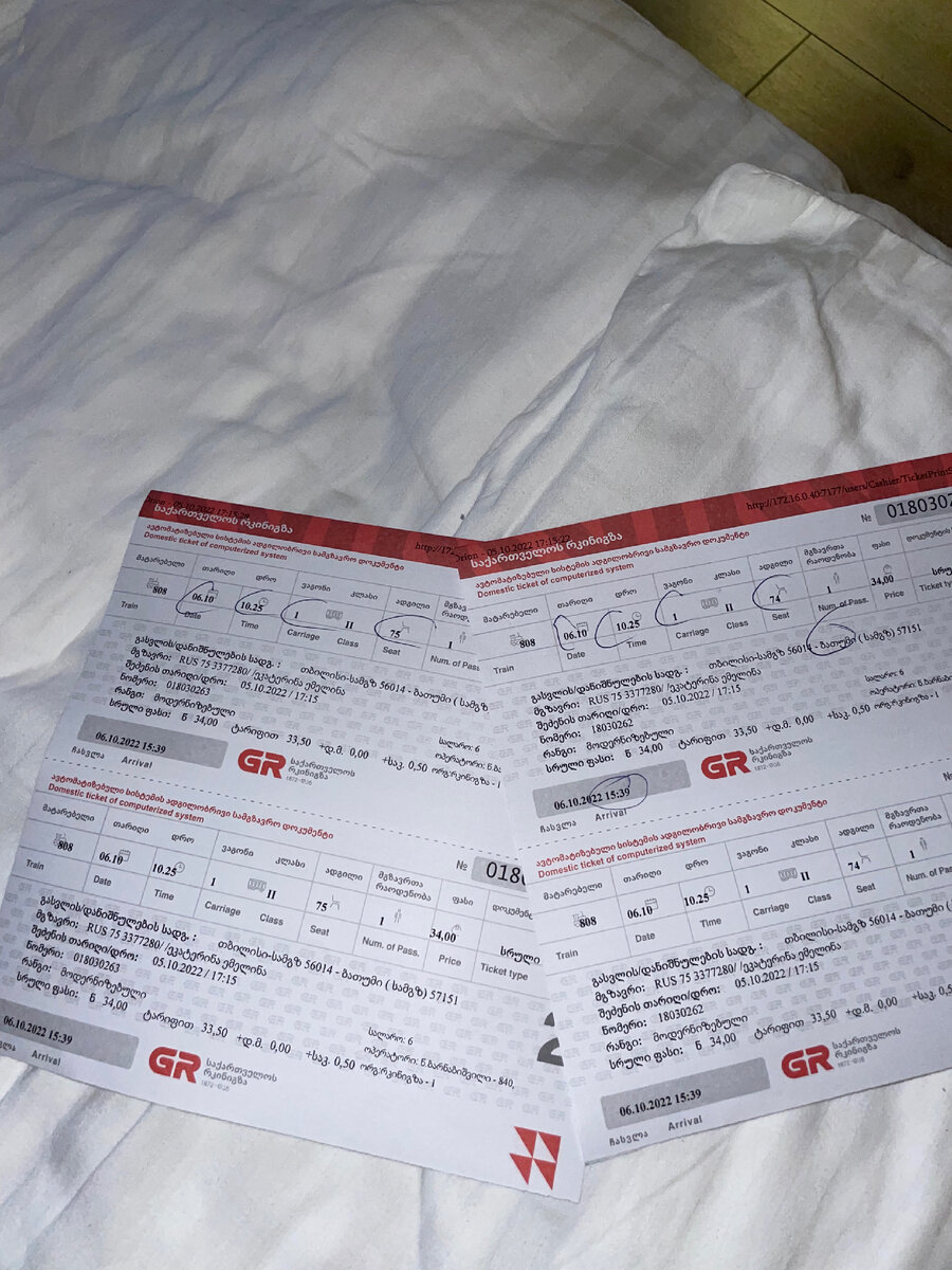 всем привет с побережья чёрного моря, мы в батуми! 🌴 медленно, но верно ползём в сторону турции, поэтому спустя 5,5 часов езды на поезде мы оказались в курортном городе грузии. 🚝 поезд - супер: двухэтажный, комфортабельный, по типу аэроэкспресса, чистенький и всего за 34 лари (714р); также были места первого класса, которые нам, к сожалению, не предложили, и мы пожалели, что не спросили о них сами, потому что самая большая пролема для меня в любом самолёте/поезде/электричке - вечно орущие, вечно плачущие, вечно бегающие дети и родители, которые ничего с этим не делают. было ощущение, будто всех детей посадили именно в наш вагон; крики продолжались около 2-3 часов, и, конечно же, мы не поспали 🤡 батуми встретил нас пасмурной погодой, сейчас тут +18-22° днём. считается, что с начала сентября до середины октября здесь бархатный сезон, не знаю почему, тут каждый день дожди 🤷♀️ сразу видно, что это туристическая зона: все разговаривают на русском, палатки с прибамбасами для моря, куч