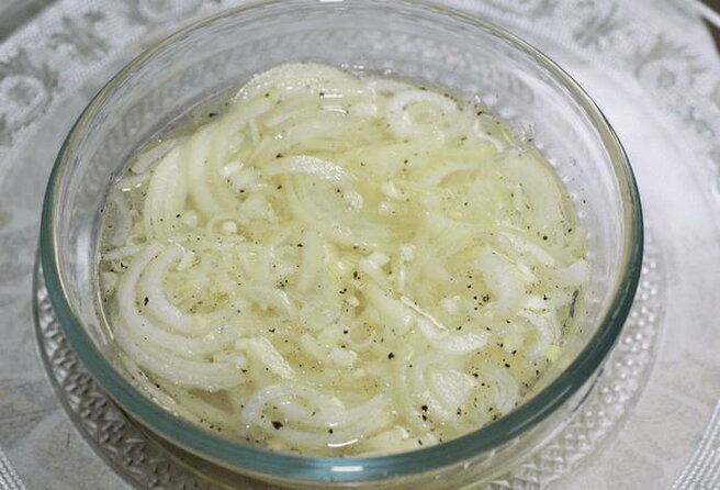Сочный, питательный, очень сытный салат из копченой курицы, фасоли и болгарского перца. Это невероятное сочетание вкусов, от которого невозможно оторваться. Дополнит любой гарнир и сделает его еще аппетитнее! Ингредиенты: Копченая курица — 450 гр. Фасоль консервированная — 300 гр. Болгарский перец сладкий — 1 шт. Лук репчатый — 2 головка Зелень — по вкусу Майонез — 30 - 40 гр. Кипяток — 100 мл. Уксус столовый 9% — 3 ст.л. Сахар-песок — 1 ст.л. Соль — 2 ч.л. Перец чёрный молотый — по вкусу Процесс приготовления ШАГ 1 Лук чистим от шелухи, режем его полукольцами и замачиваем в маринаде из воды, уксуса, 1 ч.л. соли и 1 ст.л. сахарного песка. Оставляем его на 20 мин. ШАГ 2 Теперь нарезаем копченую курицу небольшими кусочками. ШАГ 3 Перец промываем, разрезаем его на половинки и чистим от семян. Удаляем плодоножку и нарезаем перец кубиками, примерно такого же размера, как и курицу ШАГ 4 Зелень моем и измельчаем. ШАГ 5 Сливаем воду с фасоли и соединяем все ингредиенты в глубокой миске. ША