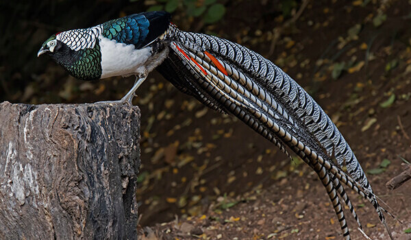Алмазный фазан невероятно красивая птица. Сочетание ее перьев позволяет увидеть цвета, которые мы не видели ранее. Говорят, что самая красивая часть фазана – это его хвост, который, кстати, длиннее, чем все его туловище.
