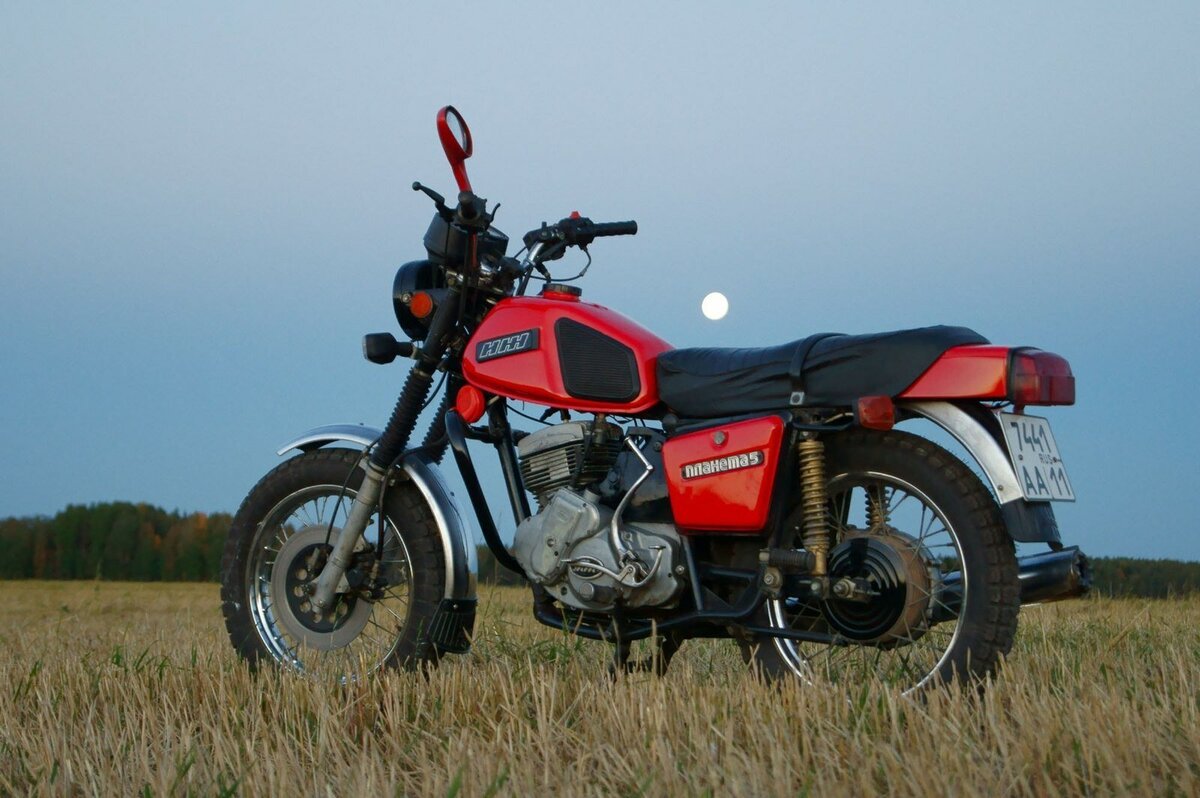 Сегодня речь пойдет про мотоцикл Иж Планета 5, многие этот мотоцикл называют *автомат калашникова* мол он такой же надёжный и безотказный (лично мне сложно связывать словосочетание советский мотоцикл и надёжность) Для меня совок станет надёжным в случае если из него выбросить родную подвеску и мотор, оставив только раму. Единственное чем надёжны совки так это металлом. В Союзе умели делать качественный металл и ЛК, Вот краска и металл на совках практически неубиваемые и это факт.