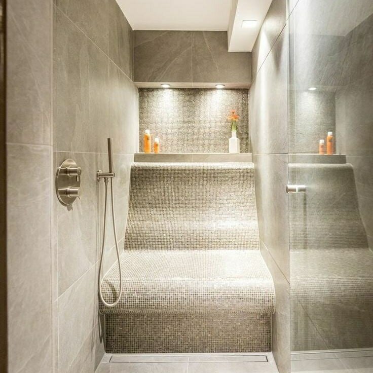 Организовать хаммам можно и на небольшой территории, компактно разместив каменные кресла, ступени и душ.