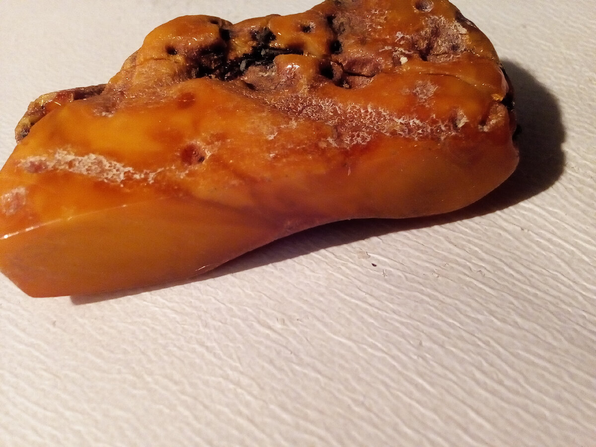 Я решил, что сверху - грязь... Этот янтарь я купил 12 ноября 2022 г. на Вернисаже. Вооооот... И он у меня пока лежал на столе... Тут я решил потереть его и ощутить запах, понимаете ли... А янтарь взял и развалился. Ну, не то чтоб совсем, но кусок отвалился, да. И тут я подумал, что то, что я принял за грязь - может не грязь? А мумифицированный трупик насекомого? Может кто угадает признаки? Вот, не лапка ли на первом фото? На верхней части куска... Нет, походу, там что-то всё же было... Может и часть растения... Загадка природы! :0)