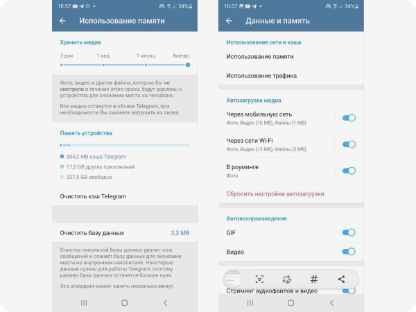 Даже если ваш смартфон оснащен 256 ГБ встроенной памяти, рано или поздно вы все равно можете столкнуться с ее нехваткой. Рассказываем, как почистить телефон на Android от ненужных файлов. Важно! Перед любыми операциями с системой смартфона и особенно перед чисткой нужно сделать резервную копию. Если что-то пойдет не так, она позволит восстановить смартфон до прежнего состояния. Очистка кэша Очистка кэша в лучшем случае позволит вам освободить лишь несколько гигабайтов, и, если вы активный пользователь, приложения быстро загрузят нужные им временные данные обратно. . В качестве примера мы приведем настройки смартфонов Samsung Galaxy с оболочкой One UI 4.1. Итак, в настройках смартфона нужно открыть раздел «Приложения». Далее — выбираем нужное приложение, а затем — открываем настройку «Хранилище». В открывшемся окне нажмите кнопку «Очистить кэш». Очистка файлов из мессенджеров Новостные каналы Telegram и родительские чатики WhatsApp — вот причина многих страданий. Чтобы было удобне