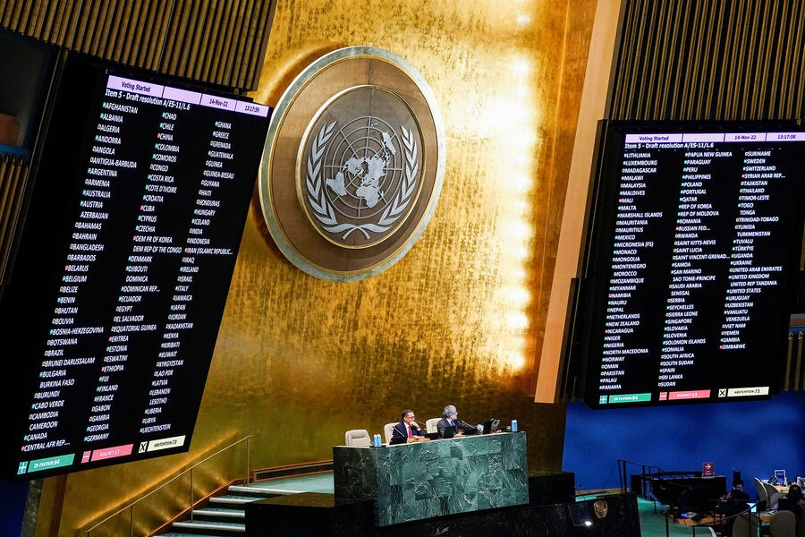 Генеральная ассамблея ООН большинством голосов приняла проект резолюции о возмещении ущерба Киеву от российской спецоперации. Резолюцию поддержали 94 члена, против выступили 14, еще 73 члена ООН воздержались. По словам постпреда РФ в Организации Василия Небензи, Запад таким образом пытается «легитимизировать неприкрытый грабеж». Подробнее — в материале «Газеты.Ru». ГА ООН большинством голосов приняла проект резолюции о возмещении ущерба Киеву от российской спецоперации. Резолюцию поддержали 94 члена, воздержались 73 члена, против выступили 14 членов организации — Багамы, Белоруссия, Китай, Куба, КНДР, Эритрея, Эфиопия, Иран, Мали, Никарагуа, Россия, Сирия, ЦАР и Зимбабве. Проект резолюции «рекомендует создание ее членами, в сотрудничестве с Украиной, международного реестра нанесенного ущерба, который будет служить задокументированным свидетельством заявляемого урона, потерь и ранений, <...> понесенных в результате международно-противоправных действий РФ на Украине или против нее, а так